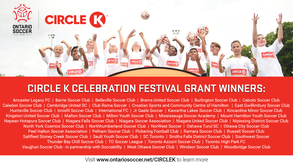 Circle K and Ontario Soccer extend their congratulations to the 50 deserving recipients of the Circle KFestival Grant program 2024 and looks forward to witnessing the positive impact of their initiatives on local communities.